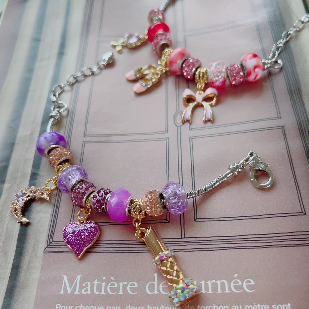 大人可愛いたくさんのヨーロピアンビーズの中からお好きなビーズと可愛いチャームをお選びいただきます。